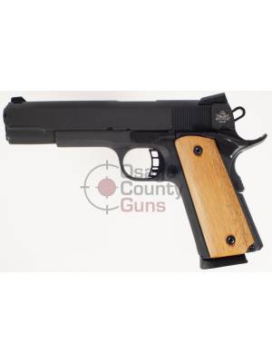 The Rock Standard full-size is built in traditional classic 70 series design and delivered with our top quality production and engineering standards. It’s chambered in .45ACP with a 5” button rifled barrel supported by a full length guide rod. Smooth, angled, snag-free style allows for quick draw in fast need situations. Includes a low profile angled rear sight along with skeletonized hammer and trigger with adjustable over travel stop and ambidextrous safety standard in the Rock series. Finished with a tough, parkerzied matte coating and comes with checkered rubber grips. True to all Rock Island 1911s, it comes with a crisp factory 4- to 6-pound trigger, making it a great experience right out of the box