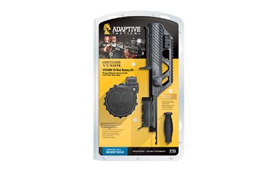 The Venom 10 Rnd. Rotary Kit delivers faster cycle times greater shell capacity and lightning fast reloads to your Mossberg 12 gauge transforming your shotgun into a Sidewinder Venom mag-fed tactical shotgun system. – This kit features the elite Wraptor forend. Specifically developed for use with pump action shotguns the Wraptor forend integrates three picatinny rails for mounting multiple accessories an integrated/patented heat shield with threaded inserts for mounting an optional kelly grip and a patented ‘sight tunnel’ which allows the operator to rapidly locate the sights and acquire targets. – Designed for owner installation – Rapid reloads and increased ammunition capacity – Improved firearm versatility and performance – Durable polymer and alloy construction – Guaranteed reliable feeding – 10 round Rotary magazine – Compatible with 12 gauge -2.75 ammunition – Ambidextrous design – Gauge: 12 -2.75 – Total rounds: 10 – Barrel length: 18 – Choke: Cylinder