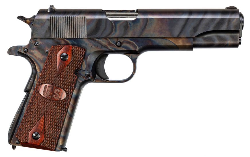45 ACP Single 5 7+1 Checkered Wood w/US Logo Grip Color Case Hardened Steel Frame/Slide