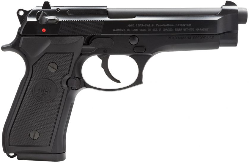 The Beretta 92 FS semi-automatic pistol operates on a short recoil, delayed blowback system, leading to faster cycle times, exceptional accuracy, and greater reliability. The chrome-lined barrel provides extreme corrosion resistance and ease of cleaning, and the deeply-recessed combat muzzle crown protects the rifling. The open top slide virtually eliminates jamming and stove piping and allows one cartridge at a time to be loaded should the magazine be lost or damaged. The rear sight is designed to provide a front projection so that in an emergency, the user may retract the slide single-handedly by pushing the rear sight against the edge of a table or door. Beretta’s exclusive Bruniton non-reflective black coating is a superior corrosion and wear-resistant finish, and the reversible magazine release is positioned next to the trigger guard for either right or left-handed shooters, allowing rapid reloading. The 92 FS pistol is the most tested and trusted personal defense weapon in history, and this model is made in Italy.
