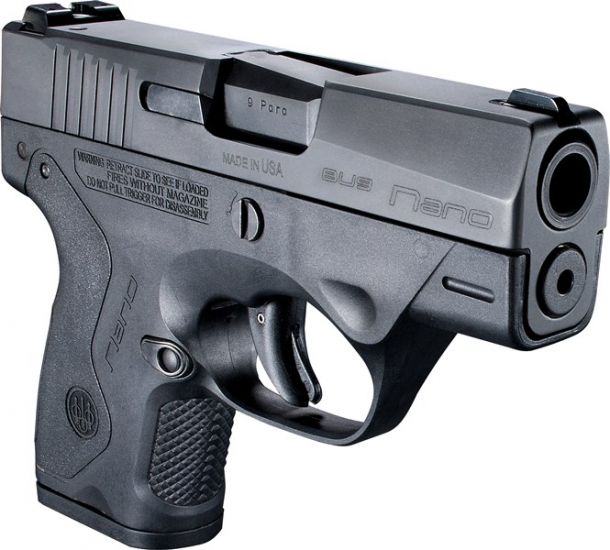 The Beretta Nano was designed with one goal in mind – creating the ideal micro-compact pistol for concealed carry and personal defense. Its thin, snag-free design effortlessly glides in and out of your holster, while its smooth contour and low weight offer you maximum comfort even for all day carry. Thanks to its modular design based on a serialized sub-chassis, the Nano can be easily modified with different grip/frames made of lightweight polymer. The magazine release button can be reversed for left-handed use, and the sights are user-adjustable. It ships with one flush fit 6-round magazine and one extended 8-round magazine.