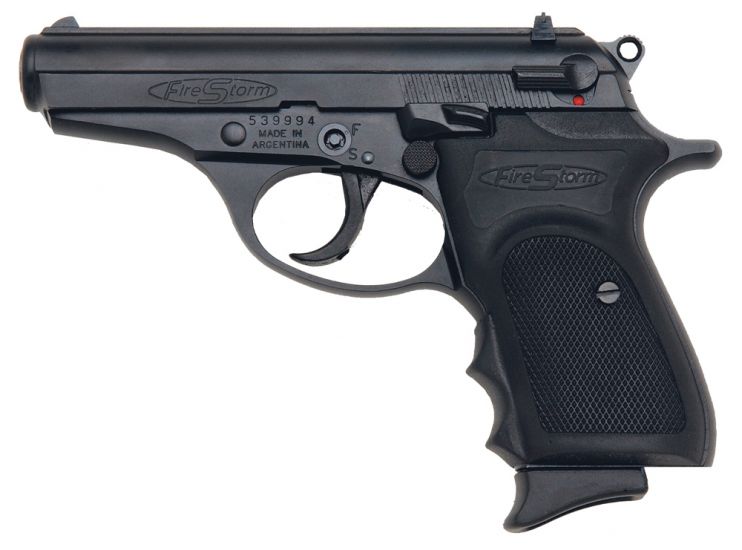 The Firestorm 380 is the California-compliant cousin to Bersas Thunder 380 series. The 3.5 barrel has a micro-polished bore with sharp, deep rifling for greater accuracy. The steel slide is topped with a staked front sight and U-shaped combat rear sight for optimum sighting in low light situations, and an extended slide release allows for smoother, easier operation. This DA/SA pistol has a manual safety, firing pin safety, magazine disconnect, and a decocker for safer concealed carry. The Firestorm features an ergonomic rubber wraparound grip on the alloy frame with a rounded trigger guard, and an extended finger rest magazine with a 7-round capacity.