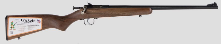 Crickett rifles are the staple of the youth shooting experience. A manual cocking, single-shot, bolt action, it features a rebounding firing pin safety to prevent accidental discharge, 2.5-3 lb. trigger pull, 11.5 length of pull, and a 16.125 barrel. Crickett rifles have a fixed front sight, adjustable rear peep sight and are drilled and tapped to accept Crickett scope mounts.