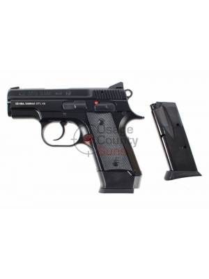The CZ 2075 RAMI is a sub-compact semi-automatic based on the proven CZ 75 line of pistols. Just like the 75, the RAMI is double action/single action, allowing it to be carried in different conditions depending on the shooter’s preferences. Several safety devices are used including a firing pin block and a manual safety. Incorporating the CZ double-stack magazine design, the little RAMI ships with a 10 round flush-mount magazine and 14 round extended magazine. With a 3” barrel and an unloaded weight of less than 26 ounces, the black polycoat, alloy-framed RAMI is ideal for concealed carry.