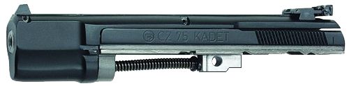 The CZ 75 Kadet conversion kit is a separate accessory for the CZ 75/85 pistol series allowing the firing of .22 LR caliber cartridges. The CZ 75 fitted with the Kadet .22LR conversion is the perfect training or plinking pistol with the slide weighted and balanced just like the CZ 75. Like its centerfire counterpart the CZ 75 Kadet is an all steel model complete with adjustable sights. Includes 2 10 rd magazines that fit flush with grips of the full size CZ 75 and SP-01 models. The Kadet conversion kit will work on the CZ 75 compact models including the P-01, P-06, PCR, and RAMI, but note that the full size magazines will extend below the bottom of the compact grips of these models. The Kadet conversion will not work on the 97, 75 TS, or P-07 Duty models.