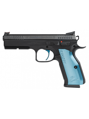 Outwardly nearly identical to the standard Shadow 2, the SA requires the hammer to be cocked in order for it to fire. Finished in black and with a set of blue aluminum grips and matching blue SA trigger, it’s a striking pistol that’s a joy to shoot.