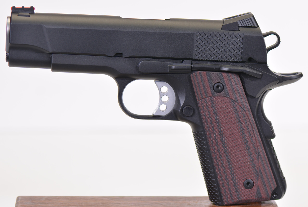 • 4.25″ Commander slide, single stack compact (Officer’s size) frame.