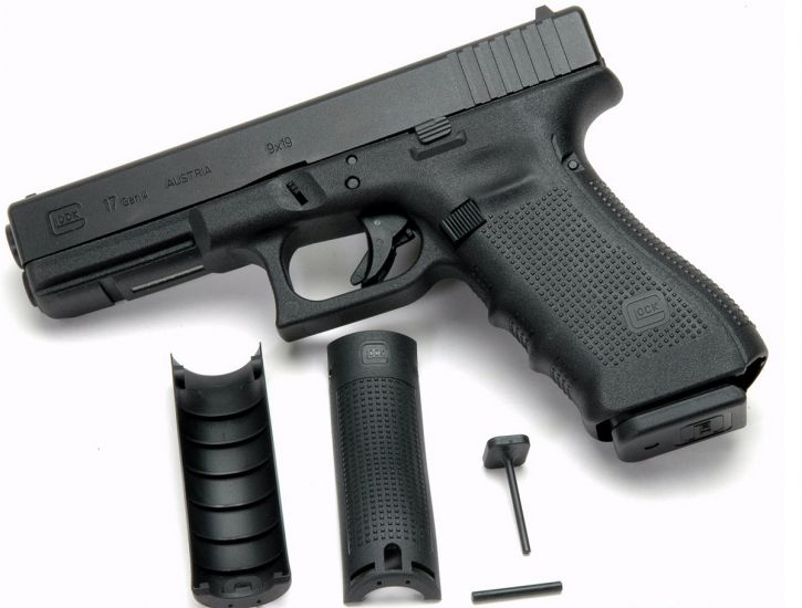 The Glock 17 Gen4 introduces revolutionary design changes to the world’s most popular pistol. The modular backstrap design lets the user to adapt the grip to hand size, and the frame surface exhibits the scientifically-designed Gen4 rough textured technology. The dual-recoil spring assembly substantially increases the life of the system, and the enlarged reversible magazine catch easily accommodates left- or right-handed operators. The G17 Gen4 retains the Glock accessory rail for accessory attachment.