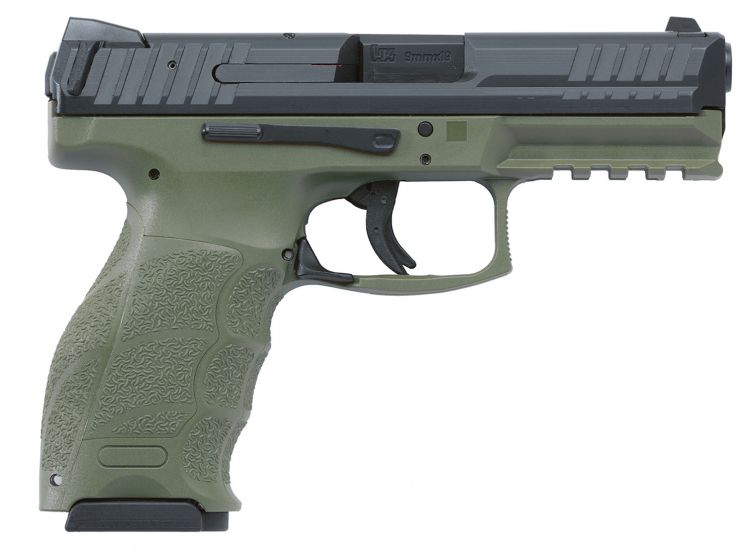 The VP Series is Heckler & Kochs first striker-fired HK since the P7 series pistols. It is well-suited for civilian sport shooting, security, military, and law enforcement use. The VP Series integrates a striker firing system with an enhanced, HK light pull trigger. The cold hammer-forged barrel made from cannon grade steel ensures long service life, as does the polygonal bore profile which also provides a slight increase in muzzle velocity. It uses an ergonomic handgun grip design that includes three changeable backstraps and six side panels, accommodating all hand sizes. Molded finger grooves in the pistols grip is ideal for an operators hand for optimal shooting. A unique VP feature is HKs patented rear-mounted charging supports on each side of the slide provide better gripping leverage for racking the slide rearward. The machined steel slide is protected from corrosion and wear by HKs hostile environment finish and all metal components, including springs and pins have superior metallurgy. The VP9 also has an extended Picatinny MIL-STD-1913 rail molded into its polymer frame, ambidextrous controls, a slide release on both sides of the frame, and the paddle-style magazine release.