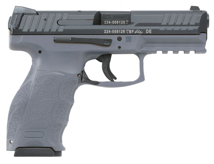 The VP Series is Heckler & Kochs first striker-fired HK since the P7 series pistols introduced in the 1980s. It is well-suited for civilian sport shooting, security, military, and law enforcement use. The VP Series integrates a striker firing system with an enhanced, HK light pull trigger. HKs cold hammer-forged barrel made from cannon grade steel ensures long service life, as does the polygonal bore profile which also provides a slight increase in muzzle velocity. The VP uses HKs ergonomic handgun grip design that includes three changeable backstraps and six side panels, accommodating all hand sizes. Molded finger grooves in the pistols grip position an operators hand for optimal shooting. An extended Picatinny MIL-STD-1913 rail molded into its polymer frame for mounting lights and accessories. All controls are completely ambidextrous. Slide releases are present on both sides of the frame, and the paddle-style magazine release can be easily activated by left- or right-handed shooters. A unique VP feature is HKs patented rear-mounted charging supports on each side of the slide provide better gripping leverage for racking the slide rearward. The machined steel slide is protected from corrosion and wear by HKs hostile environment finish and all metal components, including springs and pins have superior metallurgy. VP pistols use proven HK P30 steel magazines.