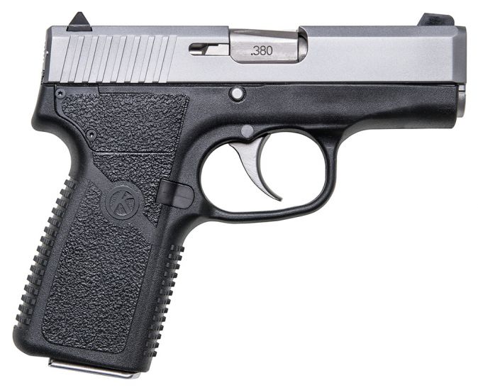 The CT380 pistol has a 3 barrel and weighs just 11.44 ounces without a magazine. The pistol has a black polymer frame and features a machined stainless steel slide. This model also features a lock breech, modified Browning type recoil lug, and utilizes Kahrs seven patents including the safe cam action found in all Kahr pistols. The result is a small pistol with very little recoil and quick follow-up shots. It has white 3-dot sights with a pinned in polymer front and drift adjustable rear.