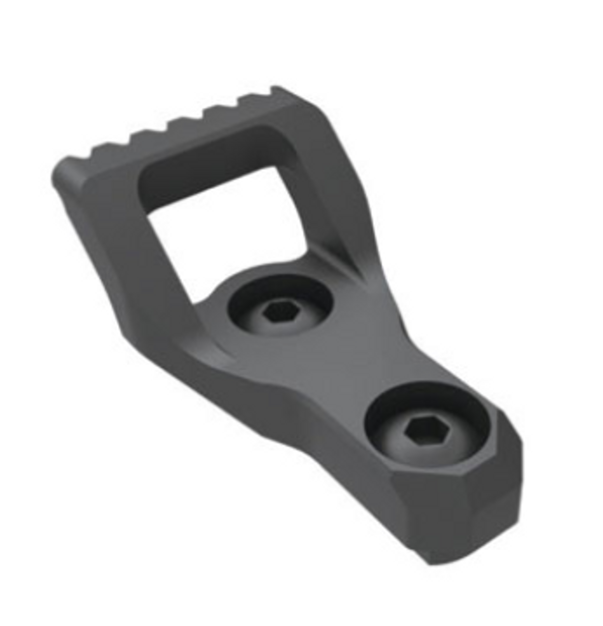 The KAC Skeletonized Keymod Barrier Stop eliminates all unnecessary weight while still being robust enough for hard-use. An aggressively serrated front edge will find grip on most surfaces, at any angle of contact. A sling can be attached directly to the Barrier Stop to eliminate the need for additional sling mounting points.