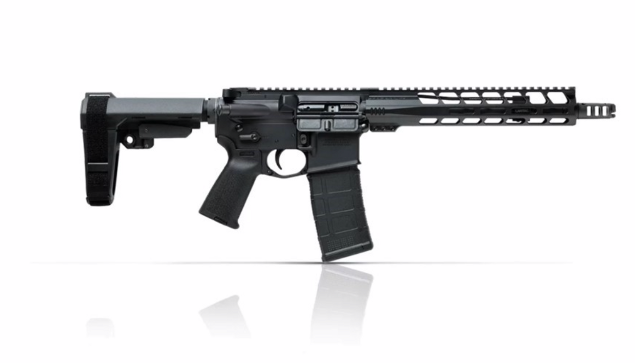 The Pistol features an SB Tactical SBA3 Brace on a six position buffer tube.