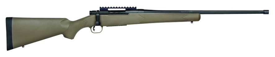 Mossbergs Patriot Predator rifle is classically styled while offering premium features at a great value. It has a top-mounted Picatinny rail for optics, adjustable LBA trigger, spiral fluted bolt with oversized bolt handle, and 4-round box magazine. It features a 22 fluted barrel with a threaded muzzle (5/8×24 tpi) and a muzzle cap. The Patriot Predator has a matte blued metal finish and a synthetic stock with an FDE finish.