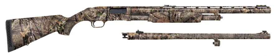 The Mossberg 500 Combo Turkey/Deer combo comes with a 24 12 gauge 3 vent rib barrel with XX-Full choke for turkey hunting even at the longest distances. It also has a 24 3 fluted fully rifled slug barrel with adjustable iron sights. This combo combines the legendary performance of the Mossberg 500 with two barrels that are specifically designed to be the best barrel possible for either hunting deer or turkey. The synthetic stock and forearm make for a lightweight super strong shotgun and with an all over Mossy Oak Break Up Country camo finish.