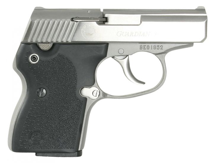 The Guardian 380 is built on the design of NAAs popular 32 ACP. The Guardian 380 ILS is similarly a 6+1 shot double action only pocket pistol built of 17-4 pH stainless steel. The ILS (Integral Locking System) safety system allows the hammer to be locked into place so the gun cant be fired until it has been unlocked by the key, releasing the hammer and enabling the firing pin. When unlocked, the button is flush with the black plastic grip with the hole in it (required for the key and ILS button). The 380 Guardian ILS offers the ultimate is portability and safety.