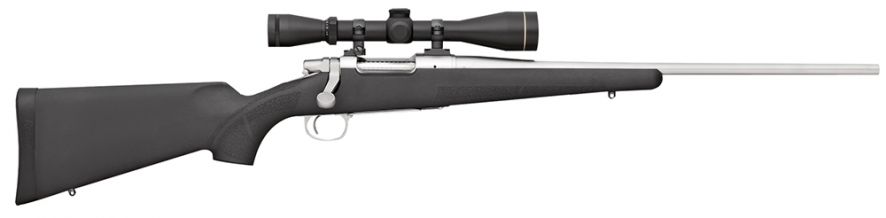 Remingtons Model Seven rifle is equipped with an X-Mark Pro externally adjustable trigger. With a 13-3/8 LOP, this light rifle is perfect for smaller stature shooters. This model has a 20 stainless steel barrel with a light contour, a hinged floor plate, and a rugged black synthetic stock with a SuperCell recoil pad.