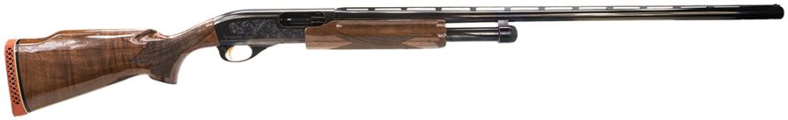 the Model 870 Wingmaster Classic Trap has returned as a regular member of the Model 870 family. This target gun features special fine line engraving with gold inlay on the polished blue receiver and a gold plated trigger. It features a semi-fancy American walnut, Monte Carlo stock and fore-end display deep cut checkering and a high-gloss finish. The Model 870 Wingmaster Classic Trap features a 30-inch light contour vent rib target barrel with twin bead sights (ivory front bead and steel mid-bead) and includes three specialized trap Rem Choke tubes (Singles, Mid Handicap, and Long Handicap).