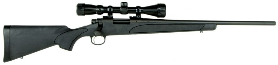Remingtons Model 700 bolt action rifle is known for its accuracy. This ADL model features a black synthetic stock with a blind box magazine and a matte blued carbon steel barrel. It includes a mounted and bore-sighted 3-9x40mm scope.