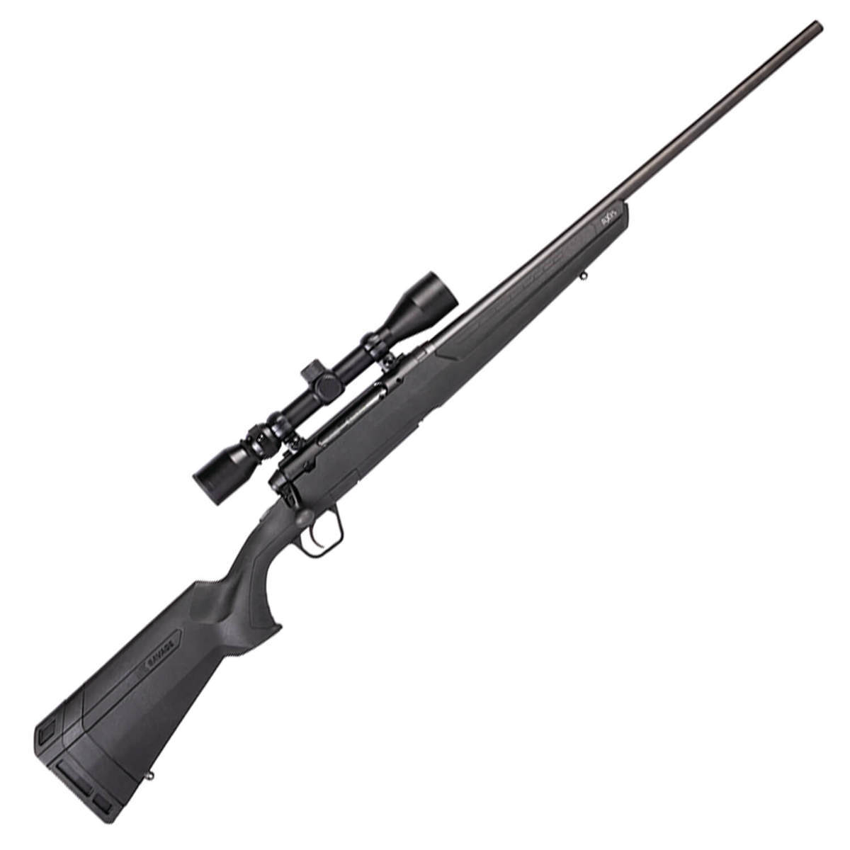 Savage Axis XP Matte Black Bolt Action Rifle – The Savage Arms Axis XP comes with a factory-mounted and boresighted Weaver 3-9x40mm scope that extracts maximum accuracy from the rifle’s 18-inch button-rifled barrel. It also features a tough synthetic stock and detachable box magazine. Factory-Mounted And Boresighted 3-9x40mm Weaver Scope Matte Black Barrel, Receiver And Stock Button-Rifled Carbon Steel Barrel Tough Synthetic Sporter Stock Thread-In Barrel Headspacing Detachable Box Magazine Smooth Bolt Action