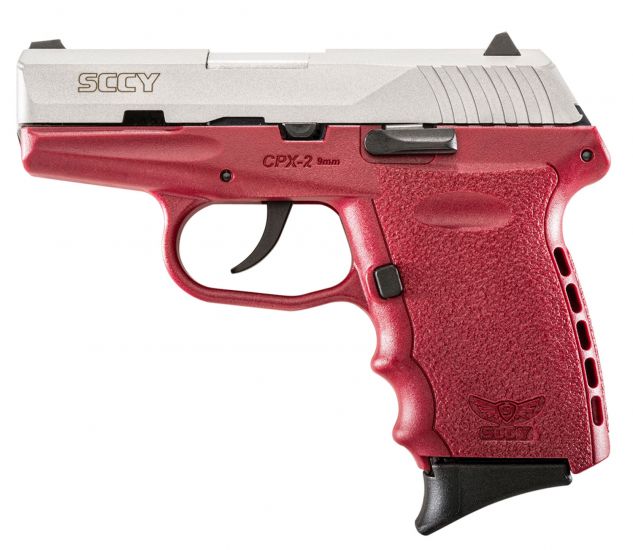 SCCYs CPX-2 is designed for concealed carry but large enough to get a good firm grip. It is considered to be one of the best priced, precision made Pocket Pistols on the market. Chambered for 9mm, it has a 3.1 barrel with a 16:1 right hand twist. The receiver is made from 7075 T6 aircraft grade heat treated aluminum alloy. The Zytel polymer frame features ergonomic finger grooves and an integral recoil cushion on the backstrap. The slide is machined from stainless steel with a Zytel overmolded polymer extension for ease of operation. It has 3-dot sights with a windage-adjustable rear. This DAO has an internal hammer with inertial firing pin to prevent accidental discharge. It has a smooth, consistent 9-pound trigger pull. It comes with two 10-round magazines with finger extensions bases installed and two flat magazine bases. This CPX-2 has a satin slide with a crimson frame.