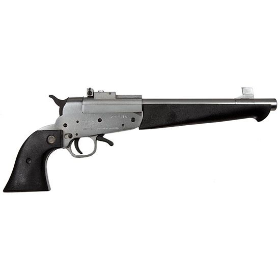 Action: SA – Gauge: .410 – Capacity: 1 – Finish: Nickel – Material: Steel – Grips: Synthetic – Sights: Fixed/Adjustable – Barrel Length: 10 – Overall Length: 13.8 – Weight: 47 oz