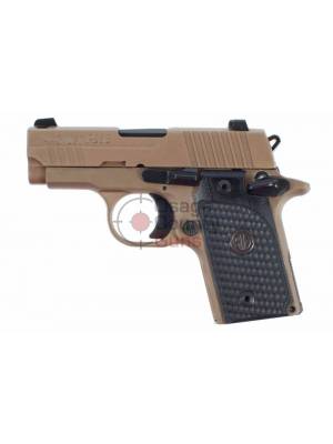 A smart looking, small handgun built with the same accuracy and reliability as large frame SIG SAUER pistols. With an overall length of just 5.5 inches a height of 3.96 inches, and weighing just 15.2 ounces, the SIG SAUER P238 is the ultimate firepower in an all metal frame concealed pistol. The P238 is built on an anodized alloy beavertail style frame that’s ideal for concealed carry.The stainless steel slide features the popular trademarked SIG SAUER slide serrations, FDE finish, G-10 Piranha grips and SIGLITE Night Sights.