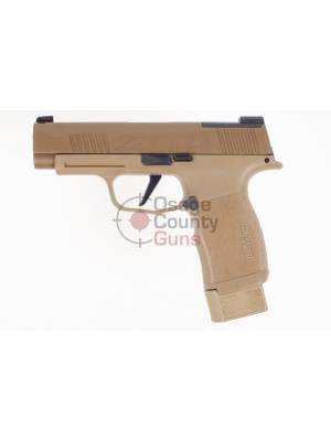 This is the new P365 XL X-Series NRA Edition 9mm. This model features a challenge coin, (2) flush fit 12-round magazines with coyote floorplates, and (1) 15-round extended magazine with coyote floorplate.