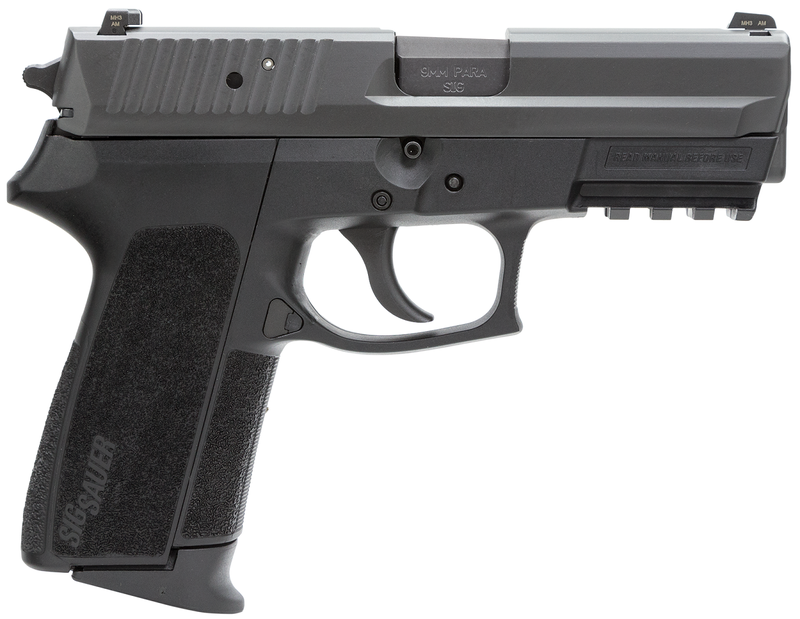 The Sig Sauer SP2022 is the latest version of our popular polymer framed pistol and features a durable, lightweight and wear-resistant polymer frame with the added tactical versatility of an integrated accessory rail. The slide is machined from a solid block of stainless steel and protected by Sig’s black Nitron finish. Available in 9mm, and .40s&w, the SP2022 can easily be converted from a Double-Action/Single-Action to a Double-Action Only configuration through a unique integral fire control unit. It also features the Sig Sauer four-point safety system. The Sig Sauer polymer framed pistols has earned an enviable reputation and proven track record of reliable performance in the hands of law enforcement professionals.
