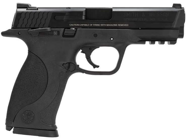 Meet the M&P From Smith & Wesson. With a reinforced polymer chassis, superior ergonomics, ambidextrous controls, and proven safety features it is quickly becoming a favored tool of law enforcement. The new standard in reliability when your job is to serve and protect and your life is on the line. Serration cuts on the rear of the receiver are scalloped giving you better purchase on the slide. In the design of the M&P, S&W considered the needs of military and law enforcement from every conceivable angle. Changeable back straps allow you to modify the grip to fit any hand size, and the swappable magazine release makes it lefty friendly as well. A sear release lever removes the requirement of pulling the trigger for disassembly, a huge jump in safety for striker-fired pistols. No other polymer pistol offers this combination of versatility, durability and safety. All of this backed by the Lifetime Service Policy from Smith and Wesson. S&W 206301 M&P Full-Size 9mm 4.25″ 17+1 Syn Grip Ambi Safety Black Finish