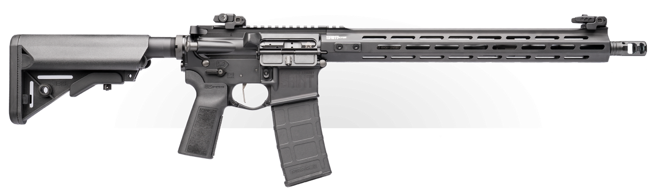 The SAINT Victor 5.56 takes the already superb SAINT rifle and amps up the features. The full-length 15″ aluminum handguard has ample M-Lok real estate for accessories and reaches out far enough to accommodate modern shooting styles. The mid-length gas system ensures reliable operation, smooth function and long life, while the flat trigger face lends itself to serious precision. Nickel boron fire controls help you put rounds on target every time, and B5 Systems furniture rounds out the package.
