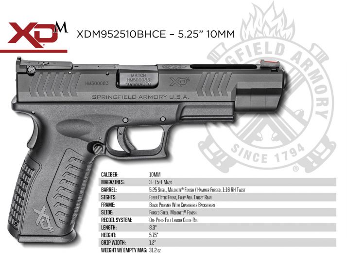 Springfield XDM 10mm 5.25″ Barrel 15+1 XDM952510BHCE