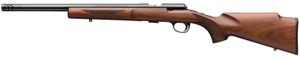 Precise construction yields precision accuracy. If you’re looking for precision-built rimfire rifle to test your skills at the range or take to prairie dog town for varmint control, this T-Bolt should be on your short list. The compact 16-1/2″ heavy bull barrel includes a muzzle brake threaded with common 1/2″x28 TPI threads that make it ripe for adding a sound suppressor. The walnut stock is a steady platform as well with a wide fore-end for added stability from a rest and a raised comb for improved eye to scope alignment. Available in three popular rimfire calibers to match your sport or quarry.