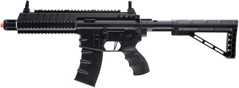 Lightweight and durable injection molded polymer receiver. Front Railed Handguard great for tactical accessories. Non-blowback gas system powered by 12g CO2 cartridges. Flat top receiver is ideal for mounting optics or other accessories. 4-position adjustable crane style stock.