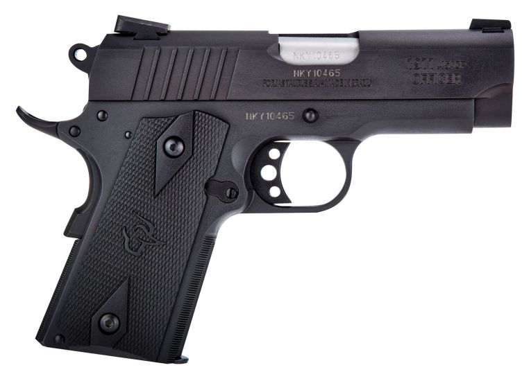 The Taurus 1911 Officer is the perfect sidearm for personal protection or off-duty carry. The 3.5 barrel is the shortest in the Taurus 1911 line with an overall length of 7.2, making it the perfect companion for carry, self defense or home use. The Officer features a discreet black on black finish, Novak drift adjustable front and rear sights and checkered black grips.