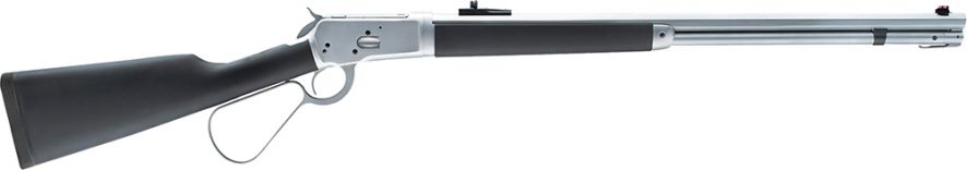 The Alaskan combines tradition with modern technology creating one of the fastest handling 1892 Lever Action Rifles designed specifically for the hunting market. A take-down rifle featuring the time-proven 1892 action, the Alaskan delivers serious knock-down power when using Hornady LeveRevolution ammunition which the action is specifically tuned for. The sights are Skinner Express style while the barrel is drilled and tapped for Scout Mount optics and Weaver 61 bases. It has a matte chrome metal finish. The stock and forend are made of wood with overmolded rubber soft touch finish, the comfortable butt stock is made of anti-shock rubber.