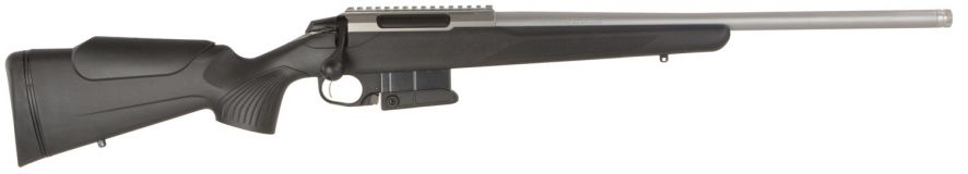The T3x Compact Tactical Rifle (CTR) offers high performance in all situations. It has a durable aluminum trigger guard and a magazine release lever enabling rapid magazine changes. Its compact size, Picatinny optic rail, Teflon bolt and semi-heavy barrel contour with 5/8×24 muzzle thread make this rifle a reliable tool for all training purposes and as a hunting rifle. It features a 10-round steel magazine and comes standard with vertical angled grip for prone shooting.