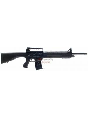 General Description: 3” gas operated, box-fed, with true AR-Style controls. Removable choke system uses Beretta®/Benelli® Mobile Threads, includes extended tactical choke. Highly durable injection molded stock and forearm; full-length picatinni rail, removable carrying handle and bridge front sight. Rubber Recoil pad, swivel studs, two (5rd) magazines included and backed by a five-year warranty.