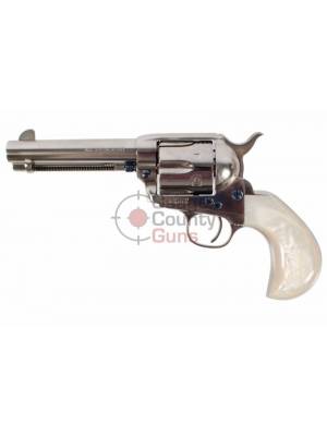 Doc Holliday is one of the most beloved dandy-gamblers in American lore, who often doubled as a lawman on the side of his friend Wyatt Earp. This revolver follows the lines of Doc’s Lightning revolver, but is available in the more reliable 1873 action and the powerful .45 Colt cartridge. Doc has a full nickel plated steel finish with a pearl-style grip.