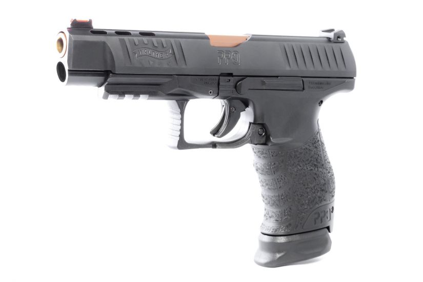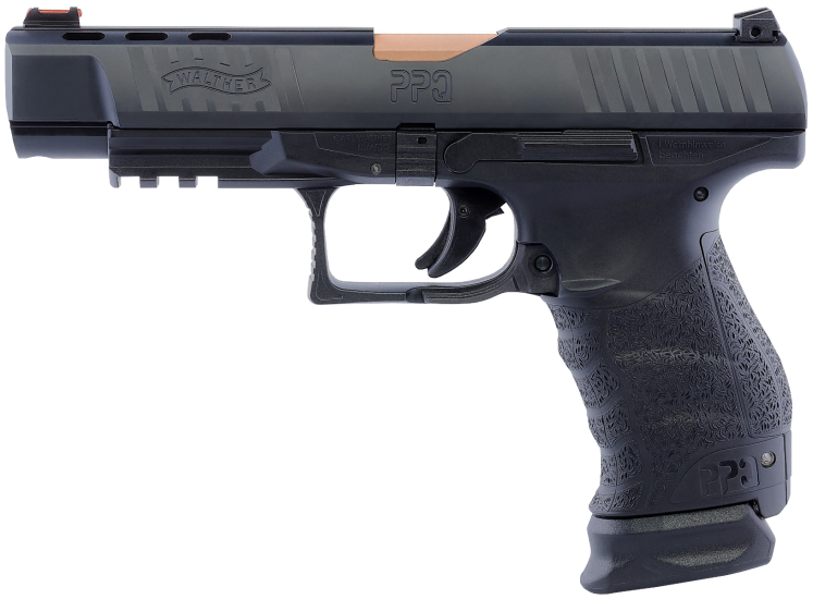 Walther PPQ M1 5” Bronze Barrel with Ported Slide. It is widely accepted that the Walther paddle magazine release is the fastest, most efficient, reloading mechanism available today. While most consumers in the U.S are accustomed to a button release, the awareness of the paddle release and its advantages is growing. The new PPQ M1 5” includes the standard PPQ trigger, the undisputed best factory trigger on a striker fired pistol available today. The new Walther PPQ M1 5” comes with an upgraded red fiber optic front sight, just like the Walther Q5 Match. It also comes standard with one 17 round extended magazine and one standard 15 round magazine. The PPQ M1 5” features the PPQ polygonal rifled 5” barrel. Firearm carries Walther’s Legendary Limited Lifetime Warranty. *Custom PVD coating is covered for a period of 2 Years from date of purchase by Gunbuyer.com.