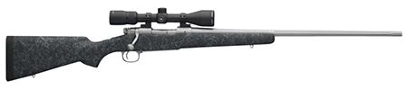 The Model 70 Extreme Weather Stainless utilizes a Bell and Carlson lay-up composite stock that provides a solid feel and features trim and lightweight ergonomics. It has a textured charcoal gray matte finish for rugged good looks and improved grip in adverse conditions. The sculpted cheekpiece helps insure proper eye-to-scope alignment from any shooting position. The thick, black Pachmayr Decelerator pad helps take the felt recoil bite out of high performance magnum cartridges. Like all Model 70s today, it features the Pre-64 type claw extractor with Controlled Round Feeding so the cartridge may be easily withdrawn from the chamber at any point after it leaves the magazine. The Extreme Weather SS rifles free-floating, fluted stainless steel barrel is made in the same factory as those found on U.S. military rifles and machine guns, and features a recessed target crown to protect the rifling.