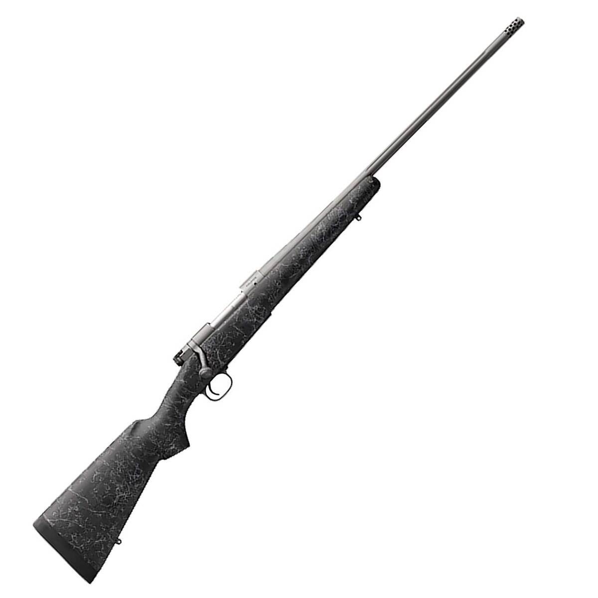 Winchester Model 70 Extreme Tungsten Cerakote Bolt Action Rifle – 243 Winchester – 22in – The look of the Tungsten Cerekote finish is extraordinary and it is tough too. But that is just the start. This Model 70 has the addition of a Bell and Carlson synthetic stock with sculpted cheekpiece and an equally beautiful Charcoal gray textured finish. It is Model 70 for extreme conditions and for serious, tough hunts, where you need a rifle that can take the elements and maintain top performance. Caliber: 243 Winchester Color: Gray, Tungsten Barrel: 22in, Free-Floating, Steel, Sporter Fluted, Tungsten Cerakote Drop at Comb: 1/2in Drop at Heel: 1/2in Three-Position Safety Recessed Target Crown M.O.A. Trigger Blade-Type Ejector Pachmayr Decelerator Recoil Pad Pre-’64 Style Controlled Round Feed with Claw Extractor Muzzle Brake Hinged Floorplate Jeweled Bolt Body Knurled Bolt Handle Matte Nickel Sling Swivel Studs