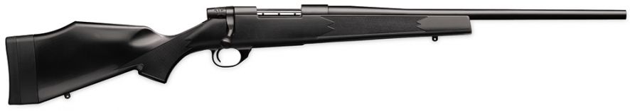 Weatherbys Vanguard rifles are guaranteed to shoot a 3-shot group of .99 or less at 100 yards (SUB-MOA) from a cold barrel when used with Weatherby factory or premium ammunition. Vanguard rifles are equipped with a match quality, two-stage trigger (adjustable down to 2.5 lbs.) and a 3-position safety, with the middle position allowing the shooter to work the action while safety is still engaged.The Vanguard action incorporates a one-piece machined bolt body, fluted for reduction in weight and bearing surface area, while eliminating binding for smooth action. Three gas ports allow high-pressure gases to escape laterally in the event of an accidental case rupture, and the massive M-16-style extractor ensures reliable and positive extraction. Vanguard rifles have a one-piece machined receiver featuring an integral recoil lug for the utmost in strength and structural integrity, along with a one-piece trigger guard with a hinged floorplate for easy access to unfired cartridges in the magazine. The Synthetic Compact model features composite Monte Carlo stock with a removable elongated spacer to adjust length of pull (12.5 to 13.625) and a 20 #1 contour barrel a bead blasted matte blued metal finish.